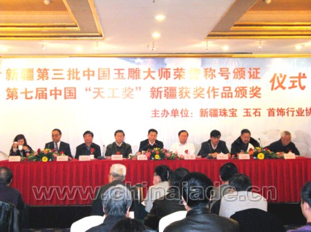 12月6日,由新疆珠寶玉石首飾行業協會(簡稱新疆寶協)主辦的新疆第三批中國玉雕大師榮譽稱號頒證暨第七屆中國“天工獎”新疆獲獎作品頒獎儀式在烏魯木齊市銀都酒店隆重舉行。