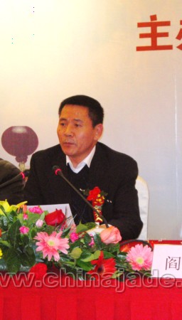 新疆地礦局總工程師、新疆寶協會長董連慧首先代表新疆寶協的業務主管單位新疆地質礦產勘查開發局、代表新疆寶協,向新疆第三批獲得中國玉石雕刻大師榮譽稱號的三位大師表示熱烈祝賀,并向新疆獲得“天工獎”各個獎項的企業表示祝賀。