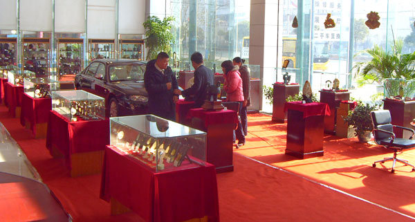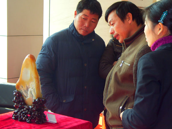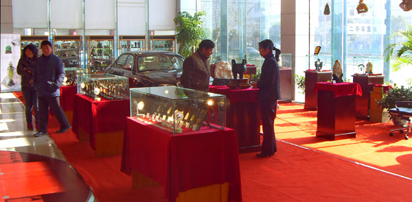 此次的和田玉精品匯展吸引了不少義烏本地和外地的參觀者,是義烏開埠以來品類最多,品位最高的和田玉精品展示,把精美的和田玉作品近距離地呈現給大家,通過觀賞與交流,大家對和田玉的品類與雕琢工藝有了更多的了解和認識,更驚訝中國和田玉器竟有如此之深的人文內涵和久遠、博大的歷史文化,對中國玉器的藝術價值也有了較明確的認知。有一位從山西專程趕來參觀玉展的女士,從上午十點半來到展廳一直到下午一點半,幾乎對每件玉器作品都細細的觀賞了一番,對玉器講解人員的玉雕作品介紹十分滿意,離開展廳時對服務人員說:此次來真是不虛此行,感覺獲益匪淺,并帶走了匯展中所有玉器的相關資料。