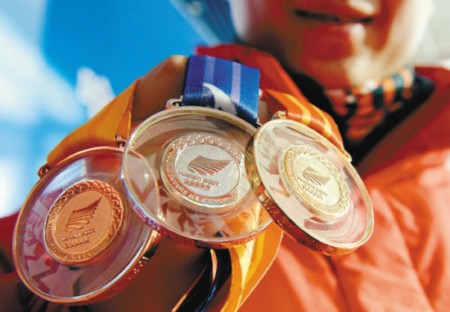 哈爾濱第24屆世界大學(xué)生冬季運(yùn)動(dòng)會(huì)已于2月18日隆重開幕,本屆大冬會(huì)獎(jiǎng)牌水晶鑲金,取自中國古代歷史上著名的美玉——“和氏璧”的造型。金牌由象征著尊榮華貴的“黃金”與象征和諧純潔的“水晶”兩種材質(zhì)組合而成,以黃金體現(xiàn)出在冰雪競(jìng)技運(yùn)動(dòng)中取得勝利的最高榮譽(yù),以水晶體現(xiàn)出冰雪運(yùn)動(dòng)的特色以及公平、公正、公開的體育競(jìng)爭(zhēng)價(jià)值觀。