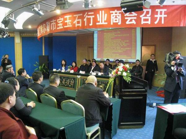 2009年3月18日上午,新疆庫爾勒市寶玉石行業商會成立大會在新疆庫爾勒銀星大酒店隆重舉行。會議同時舉行了揭牌儀式并通過了《庫爾勒寶玉石行業商會章程》及會徽,與會代表選舉產生了庫爾勒市寶玉石行業商會會長向秀明、秘書長陳曉鳴(兼常務副會長)、常務副會長侯留成、黃江等13名機構成員。