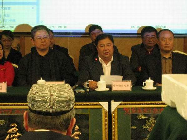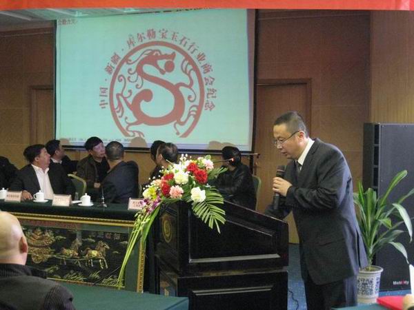 庫爾勒市委常委阿里木·買買提向庫爾勒市寶玉石行業商會授牌并作了指導性講話