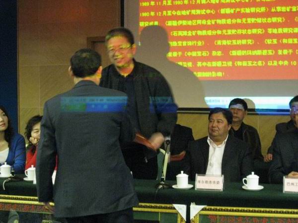 會議當天庫爾勒市委常委阿里木·買買提向庫爾勒市寶玉石行業商會授牌并作了指導性講話。巴州民政局、廣播電視局、巴州工商聯、庫爾勒市工商聯領導到會并發表了講話。自治區珠寶玉石首飾行業協會秘書長李忠志應邀到會祝賀并致賀詞,商會特聘新疆巖礦寶玉石產品質量檢驗站常務副站長岳蘊輝為首席顧問。大會在喜慶祥和的氣氛中落下帷幕。