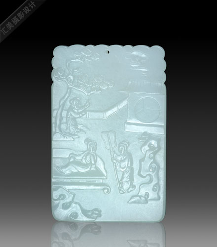 子剛制玉掛件,形若方形或長方形,寬厚敦實(shí),猶如牌子,故簡稱為“子剛牌”。子剛牌的特殊魅力,體現(xiàn)在別開生面的形態(tài)上,精美的玉質(zhì)上,精細(xì)的雕工于一體的藝術(shù)風(fēng)范,領(lǐng)略到陸子剛玉雕的藝術(shù)風(fēng)采。方形的子剛牌 ,非新疆和闐佳料不用,潔白無瑕,滋潤溫柔,花紋圖案出類拔萃,以高超的琢玉技藝,多作剔地陽紋,以淺浮雕形式,將書畫圖紋表現(xiàn)得曲盡其美,淋漓盡致。常常一畫琢山水、花鳥、人物、走獸圖,雖用琢玉工具碾出,仍不失畫家的筆墨情趣;另一面雕刻詩文,龍飛鳳舞,仿佛是名書家直接書寫在其上,并琢有子剛印款。將中國的書畫藝術(shù)鐫刻在玉牌的正反兩面,加上玲瓏剔透的牌頭裝飾,具較高的觀賞性,玩味無窮,是子剛牌存在歡迎的主要因素。