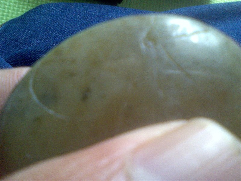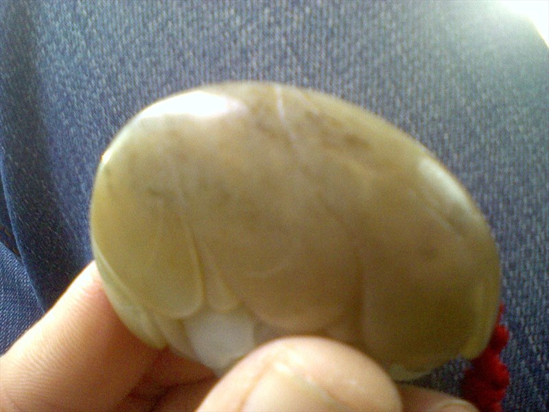 老師好,還是麻煩在鑒定下。密度自己測了下,密度是2.8922,裁紙刀用勁有劃痕,手多磨幾下看不見劃痕了。是俄玉范疇嗎?謝謝老師