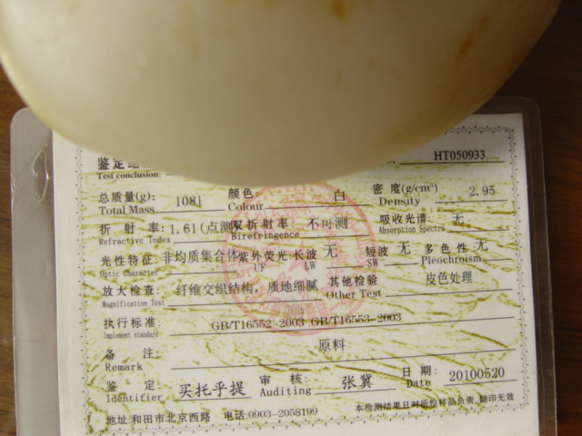 2、2010新疆和田的證書,請問正規機構會出證明產地的證書嗎,我覺得好像不靠譜,這個應該證明不了啊,