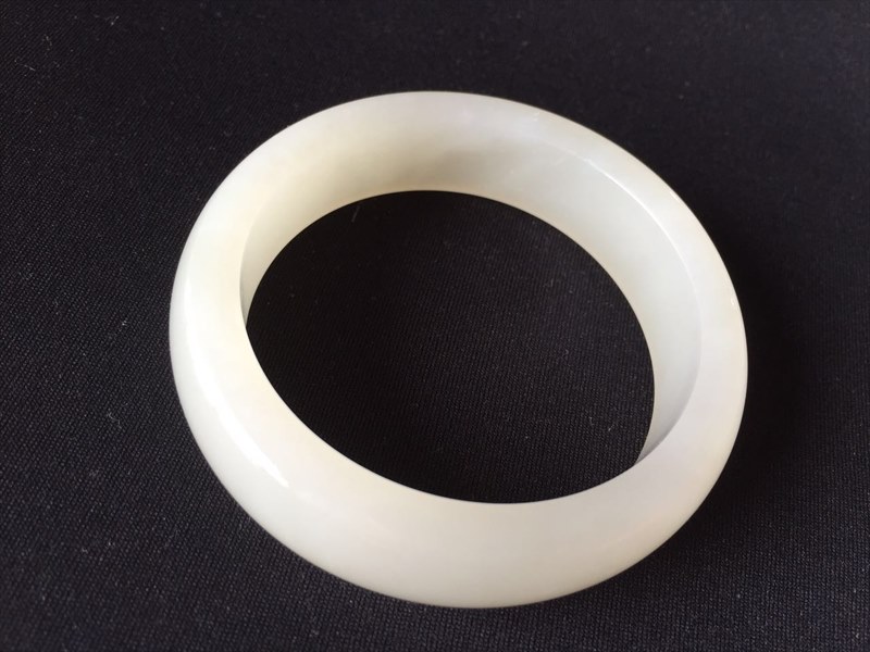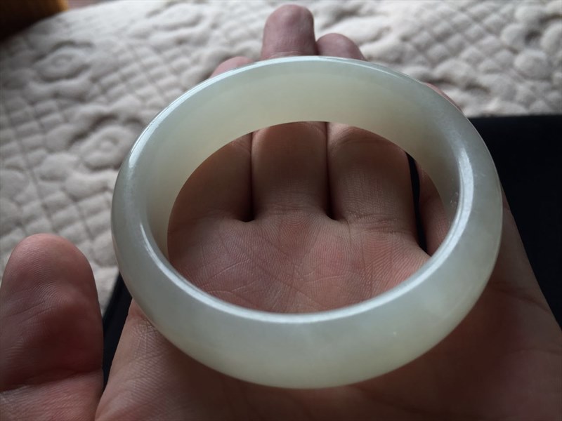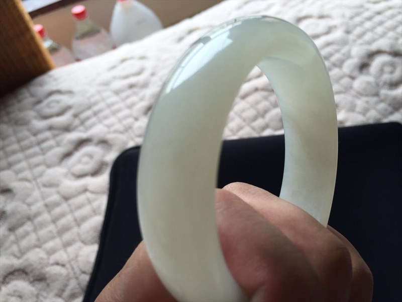 大師們好,我是玉器小白,現手里有一個玉鐲,不知道是碧玉還是玻璃的。在燈光照射下能發現里面有黑點,還有針尖大小的白色物,因為比較小,不知道是不是氣泡,還請大師們過過眼。幫我看看,小女子在此感激不盡。