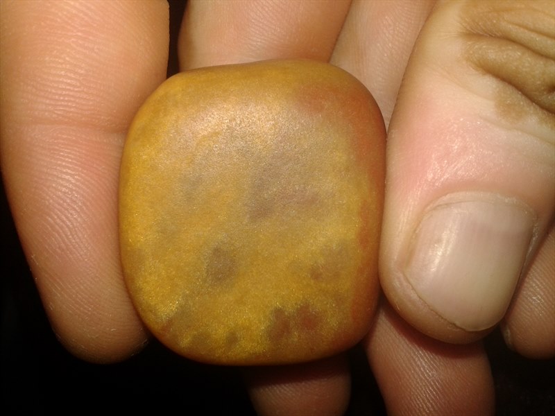 里撿的,看著很漂亮,油性很好,手機燈打著半透,小刀刻不動,再陽光下斜著看有些地方有著金色顆粒狀光點,如果把這石頭打個掛件劃算嗎?麻煩老師解惑,謝謝!
