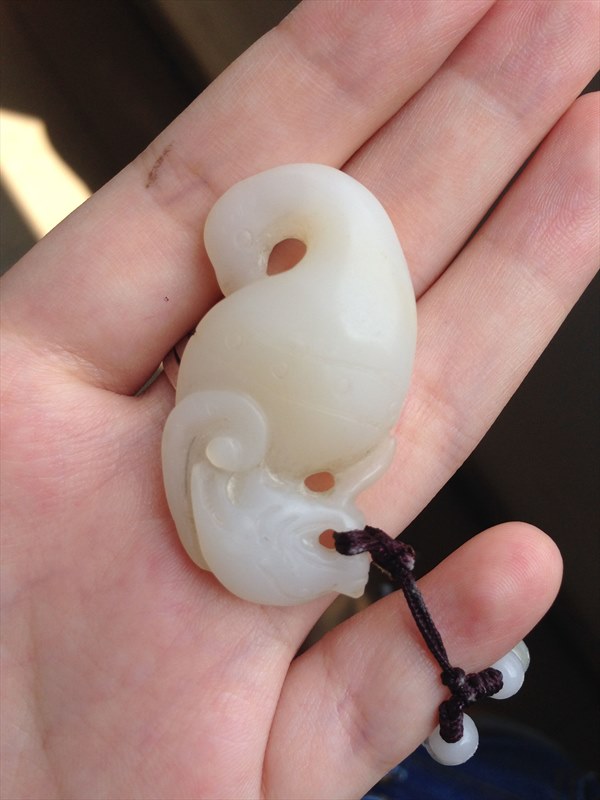 麻煩看一下這個價值,可以的話順便告訴我一下雕刻的圖案是什么,我一直看不懂。我從小就戴,有二十年了。雕刻的不是很清楚,據親戚說是兩頭都有圖案,一個龍頭,后面是一個鳳頭。半透明的,小刀劃過也沒有痕跡。謝謝啦~~拜托拜托~很想知道戴了二十年的是什么東西。。。