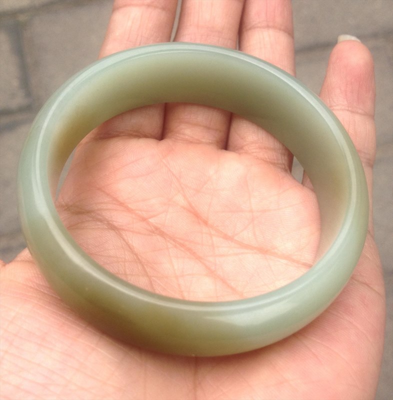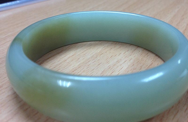 請幫忙看看這個手鐲是和田玉嗎?前面兩張是室內日光的下拍的,后面是室外太陽光線下拍的