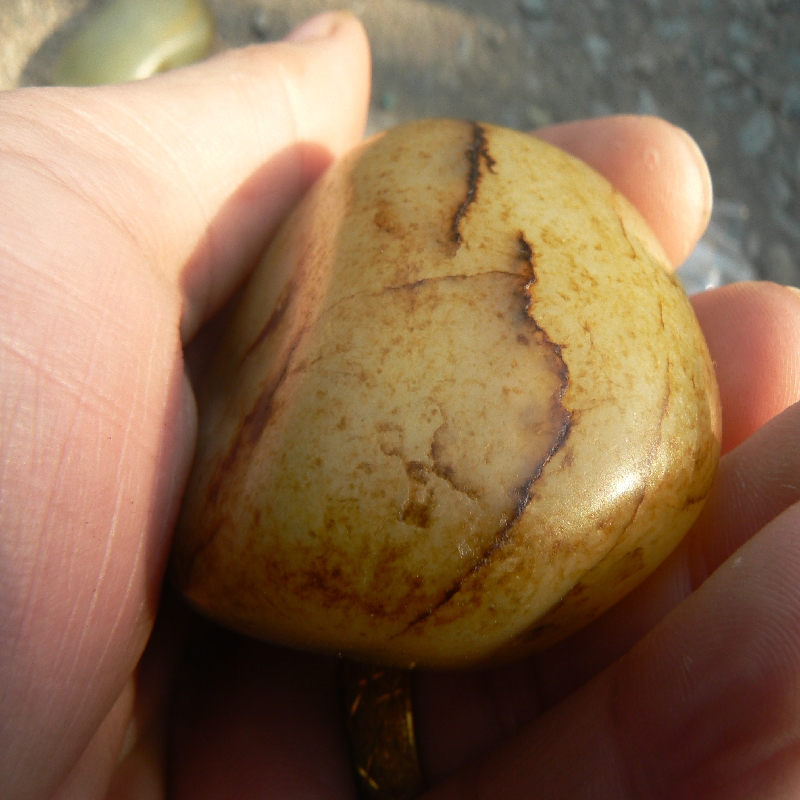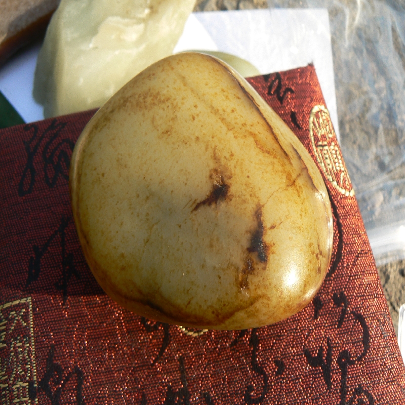 請問這種玉料是否是產在新疆和田地區的?它是否是和田青玉和鐵銅等金屬的共生礦?以前發現過嗎?很有收藏價值嗎?