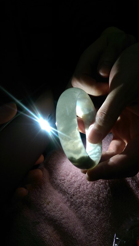 朋友都是自己找石頭做東西的 所以都沒(méi)有證書 他說(shuō)要那玩應(yīng)也沒(méi)用 前兩天又從他那入手兩個(gè)鐲子 到是不貴 朋友說(shuō)是和田青花 有人說(shuō)是青海料的煙青料 我是新手稍稍查了下要是青花的話有這么多的棉絮嗎?而且也沒(méi)發(fā)現(xiàn)什么墨色的地方啊 所以想和大師們交流下 看看它屬于什么品種的