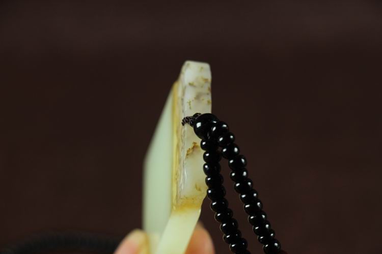 商家說是青海山料,對牌子的說明比較詳細。雕工貌似不太精細?