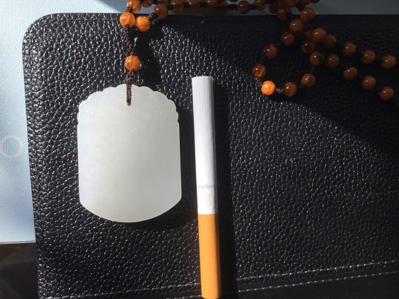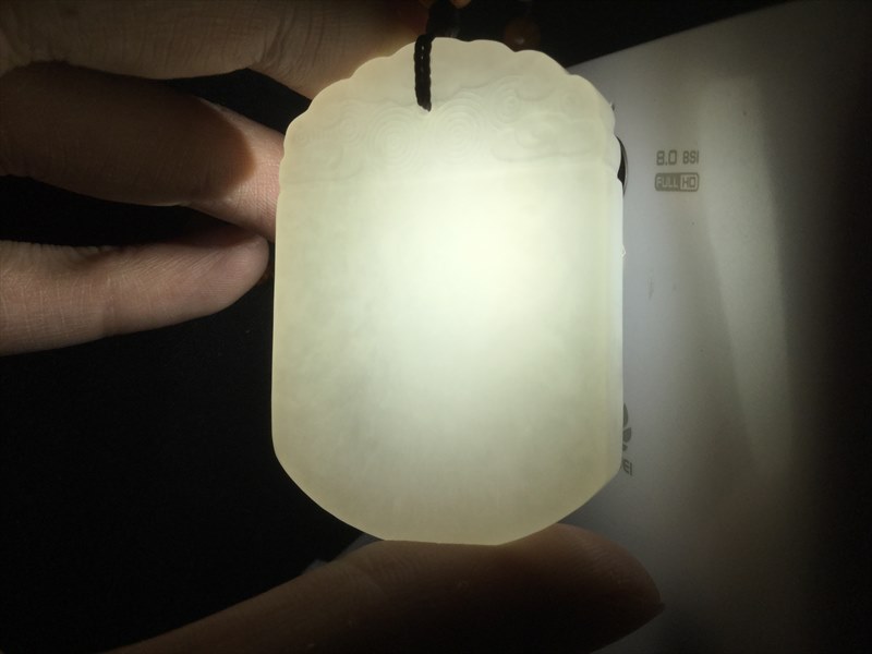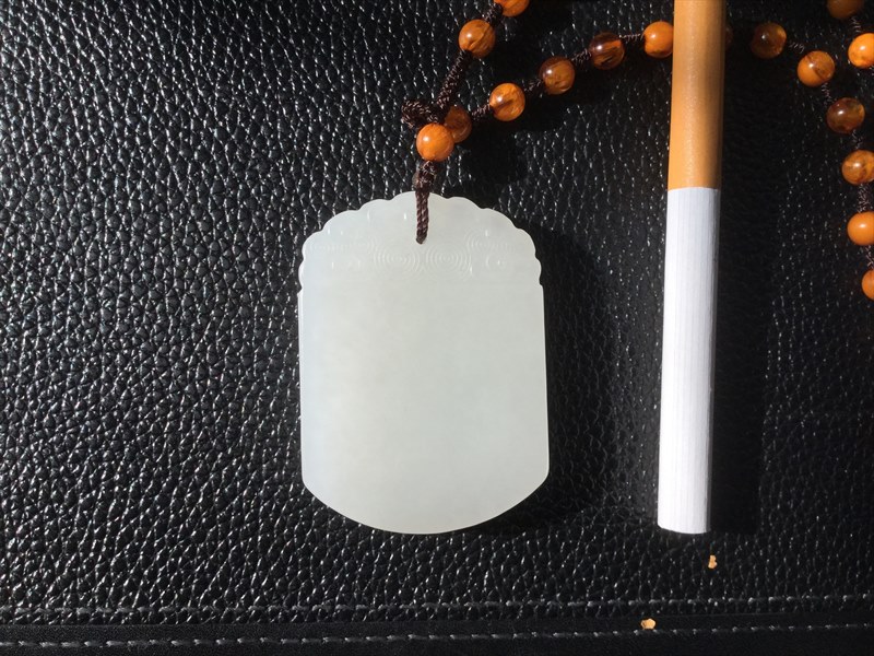 51*37*8mm 青海料,羊脂白玉,強側光燈下難見結構,頂級密度,頂部祥云圖案裝飾,其余素面,寓意“平安無事” 無水線,無雜質,整體很干凈