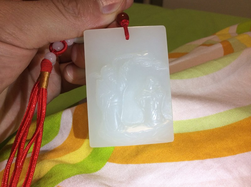 老師:您好!麻煩您幫我鑒定一下這塊玉牌,是和田玉嗎?重量有93.5克,我發了兩萬多買的,不知道有沒有買虧