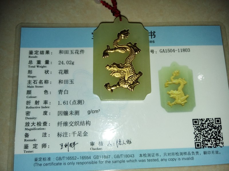 今天和弟弟去珠寶店抓獎,抓到了一等獎,能挑柜臺里的和田玉,減免1000元,限購兩件,我和弟弟一人買了一個(gè),觀音原價(jià)1498,龍?jiān)瓋r(jià)1398,問下各位大神它們是真假?有證書,如果是真的,值不值?謝謝各位!