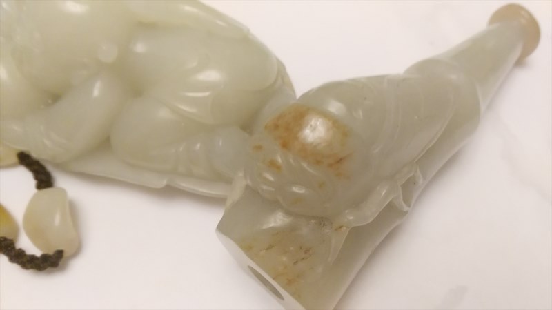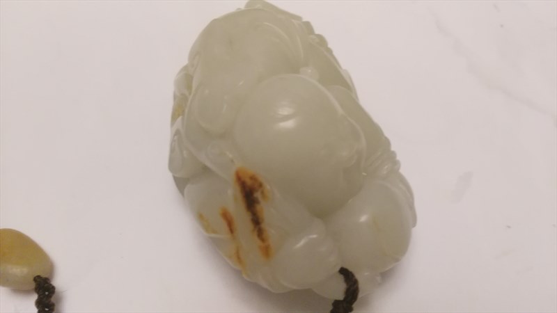 請各位老師給評價下,那個童子重量大約100克,煙嘴45克左右,請老師幫鑒定下是不是和田籽料的,質(zhì)地怎么樣謝謝,童子7000拿的,煙嘴是4000,價格合適嗎,請指教!