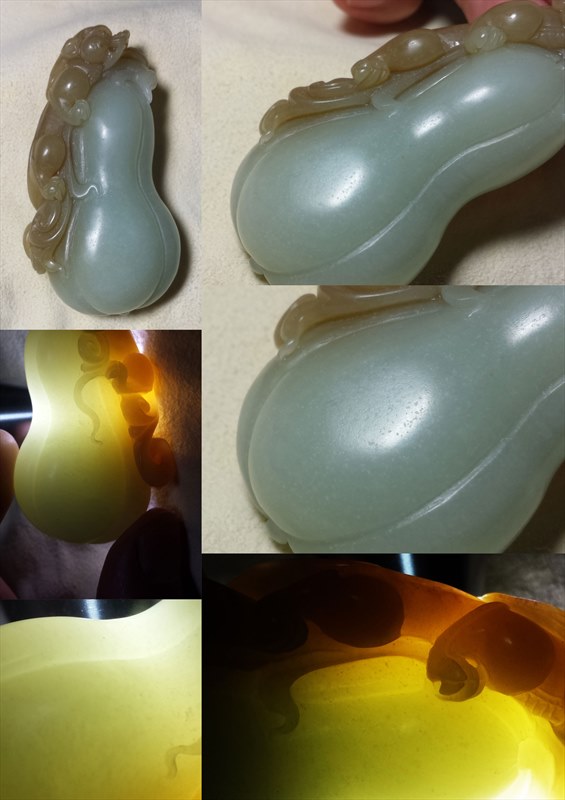 辛苦各位大神了,這塊玉其實是我在某寶上拍賣拍回來的,花了2400,我也不知道值不值,那天純粹是湊熱鬧買的玩玩的,也不知道玉好不好,反正看著挺喜歡的,買回來之后給朋友看,別人都說現在和田玉價格高得很,這個價錢肯定買的是什么差的石頭,我也不懂。反正只要是天然玉石我就好好養護它,不是說玉無貴賤嗎,呵呵,只要是喜歡不管好壞的玉石我都好好養護。還請大神們直言,多回復些。萬分感謝。辛苦各位了。