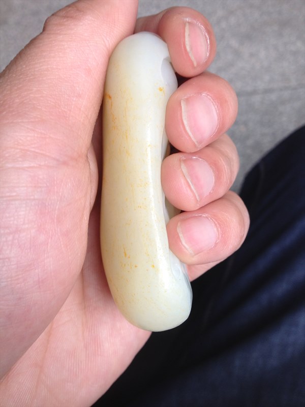 賣家說是戈壁料,掌心大小,手把感覺很舒服,但不是很懂,6000元,求各位老師賜教!