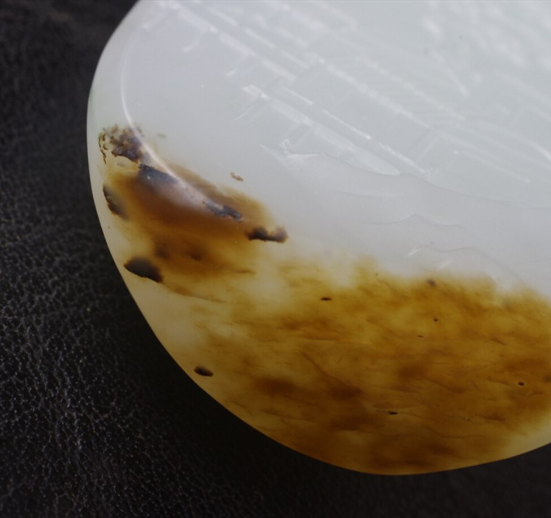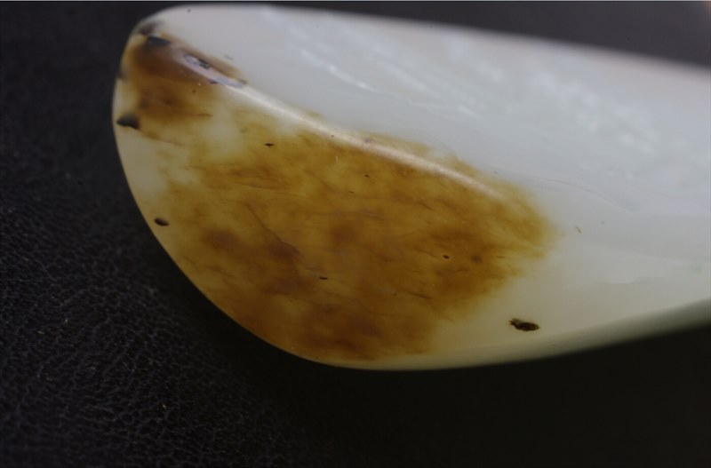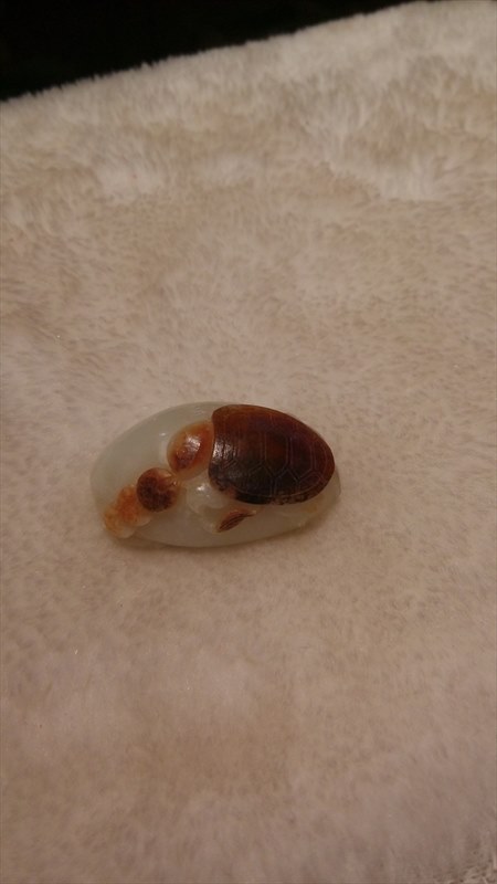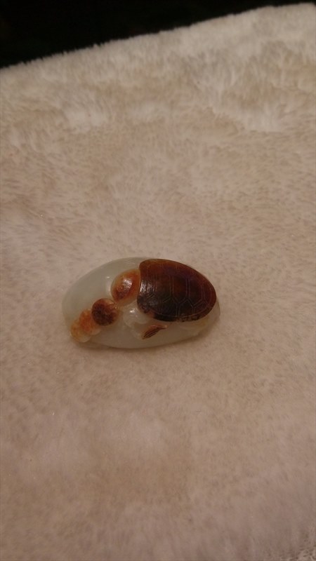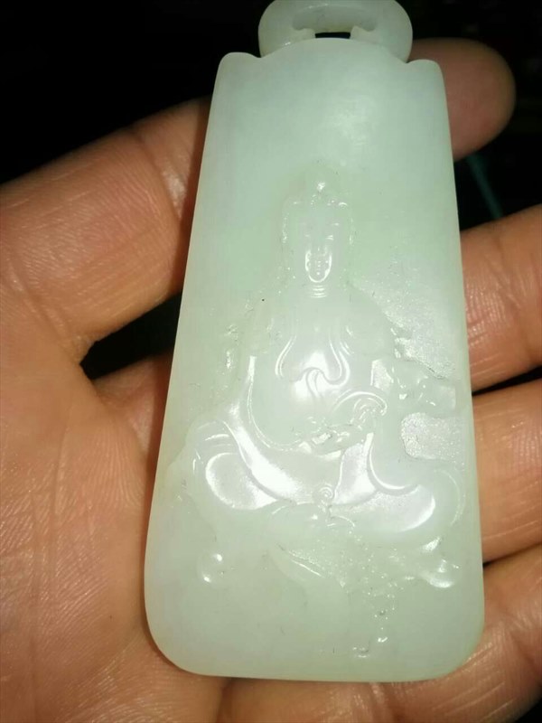 請問岳工,前段時間得此和田玉掛件,號稱和田籽料,規格約65*50*10,重量70多克,無證書,麻煩您鑒定下,謝謝!